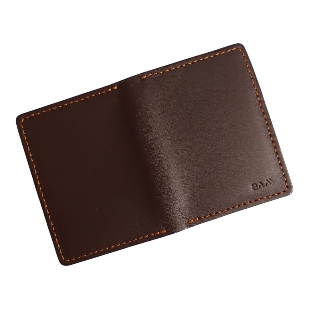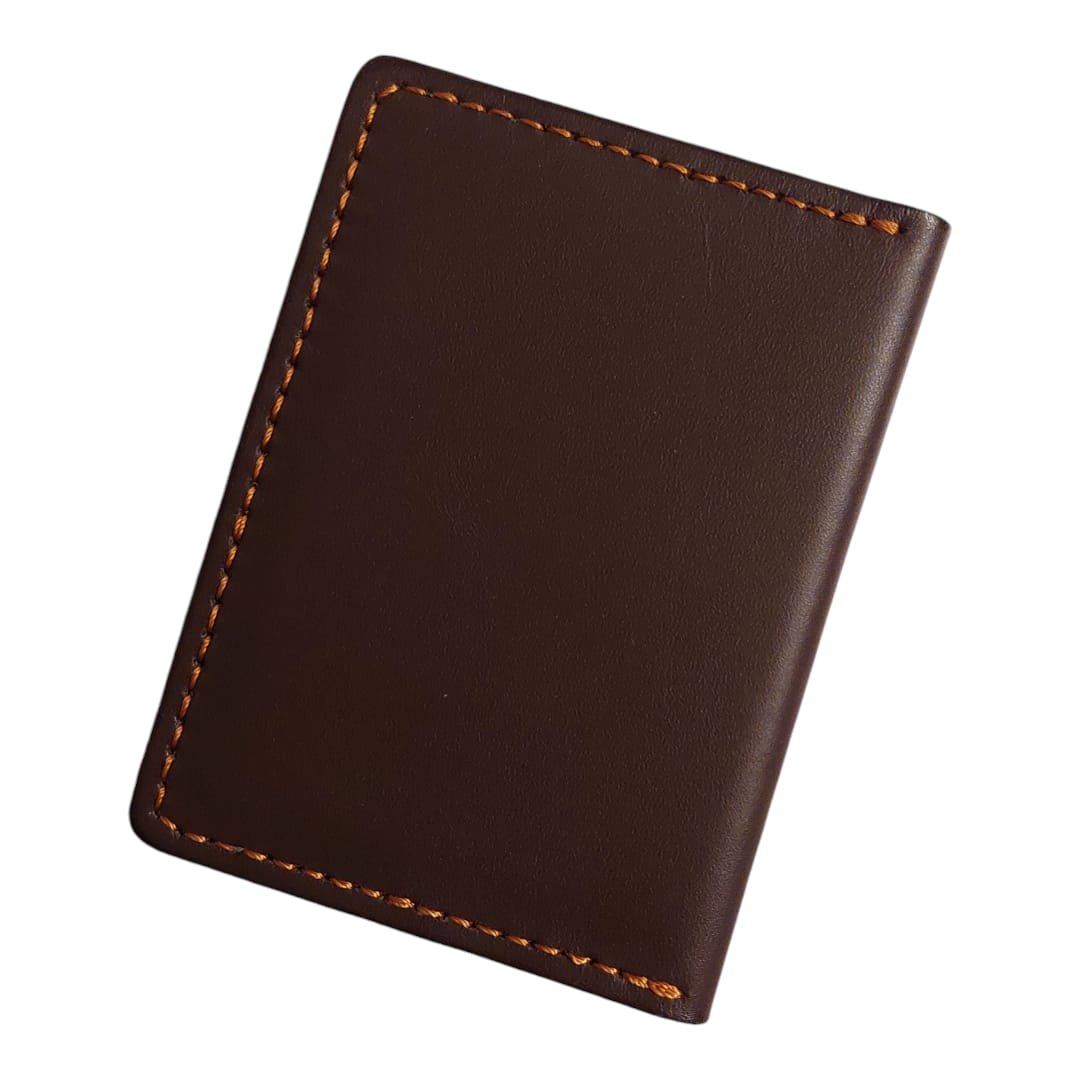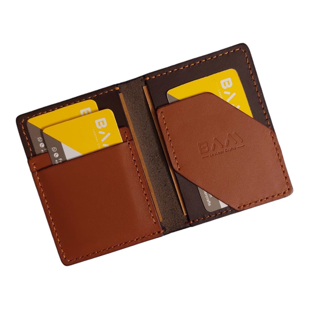 Bifold card holder having 3 card slots and 2 hidden pockets.