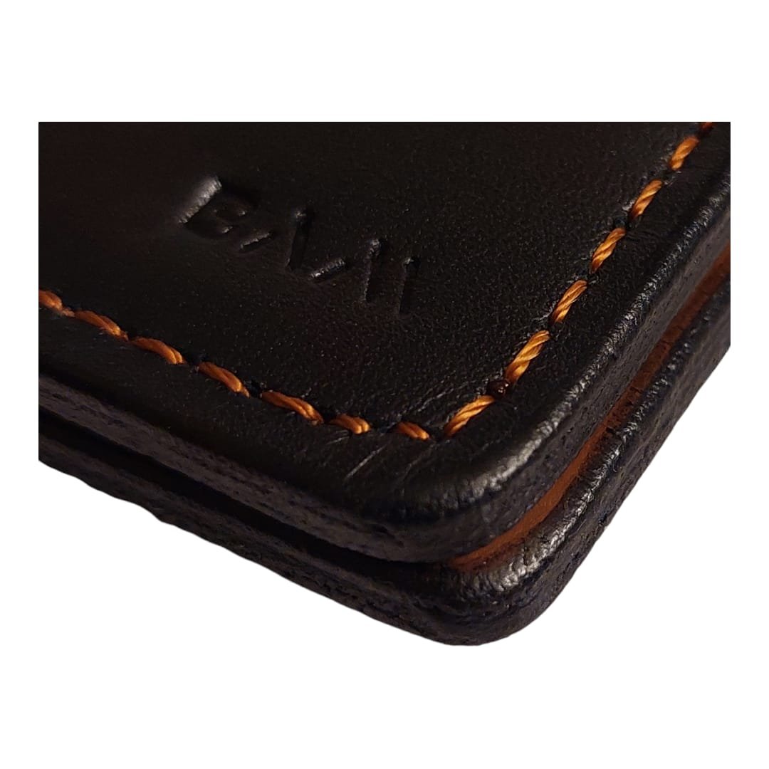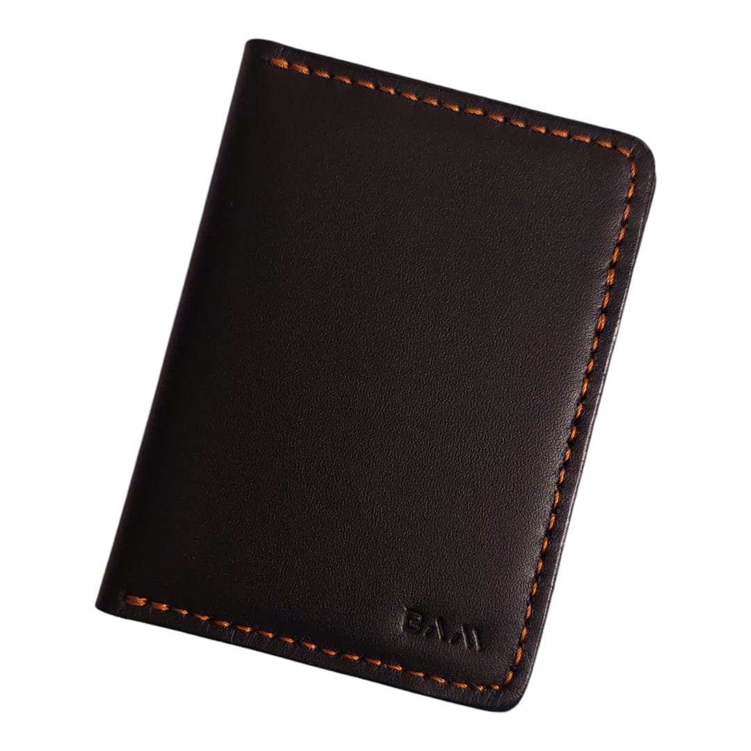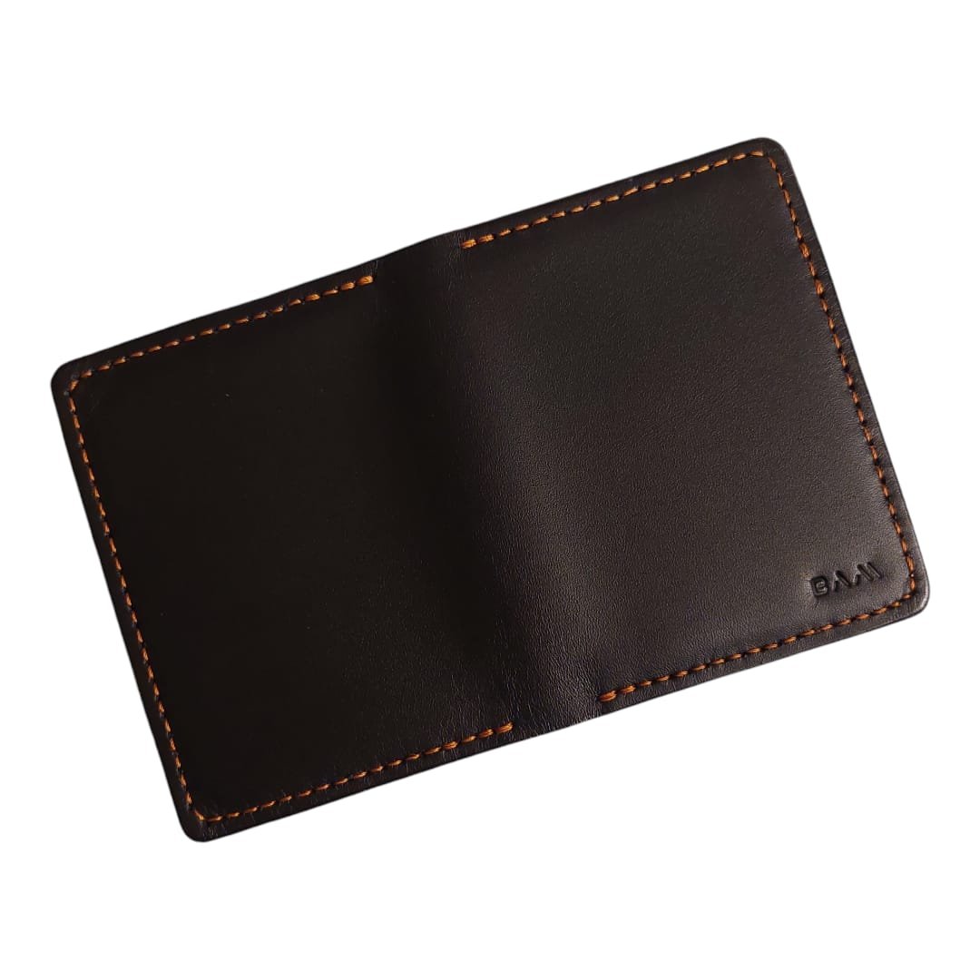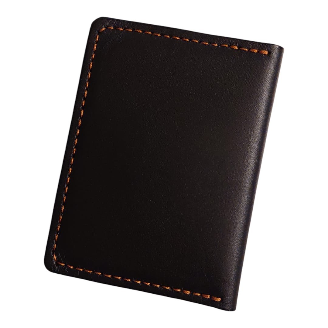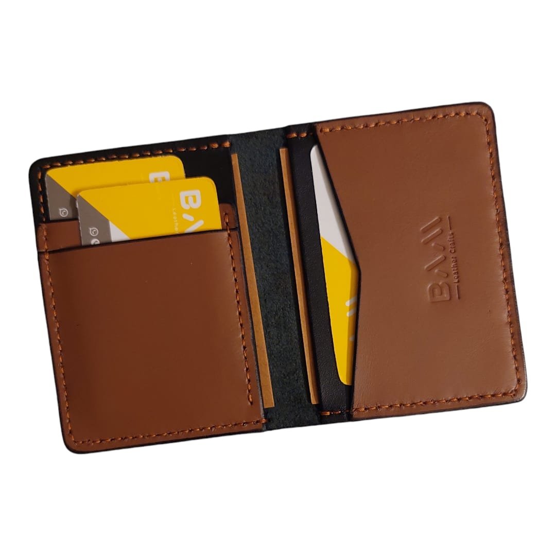 Bifold card holder having 3 card slots and 2 hidden pockets.