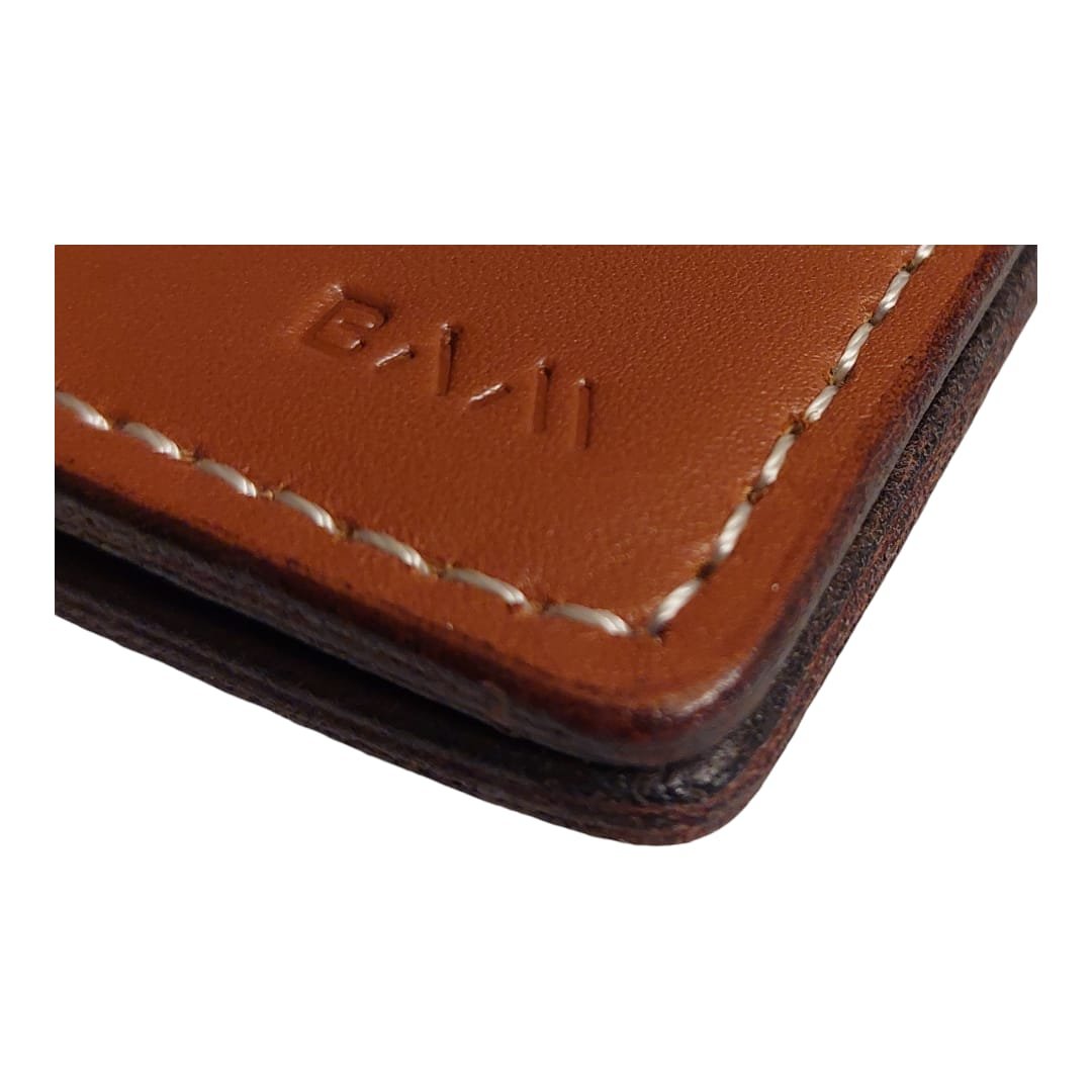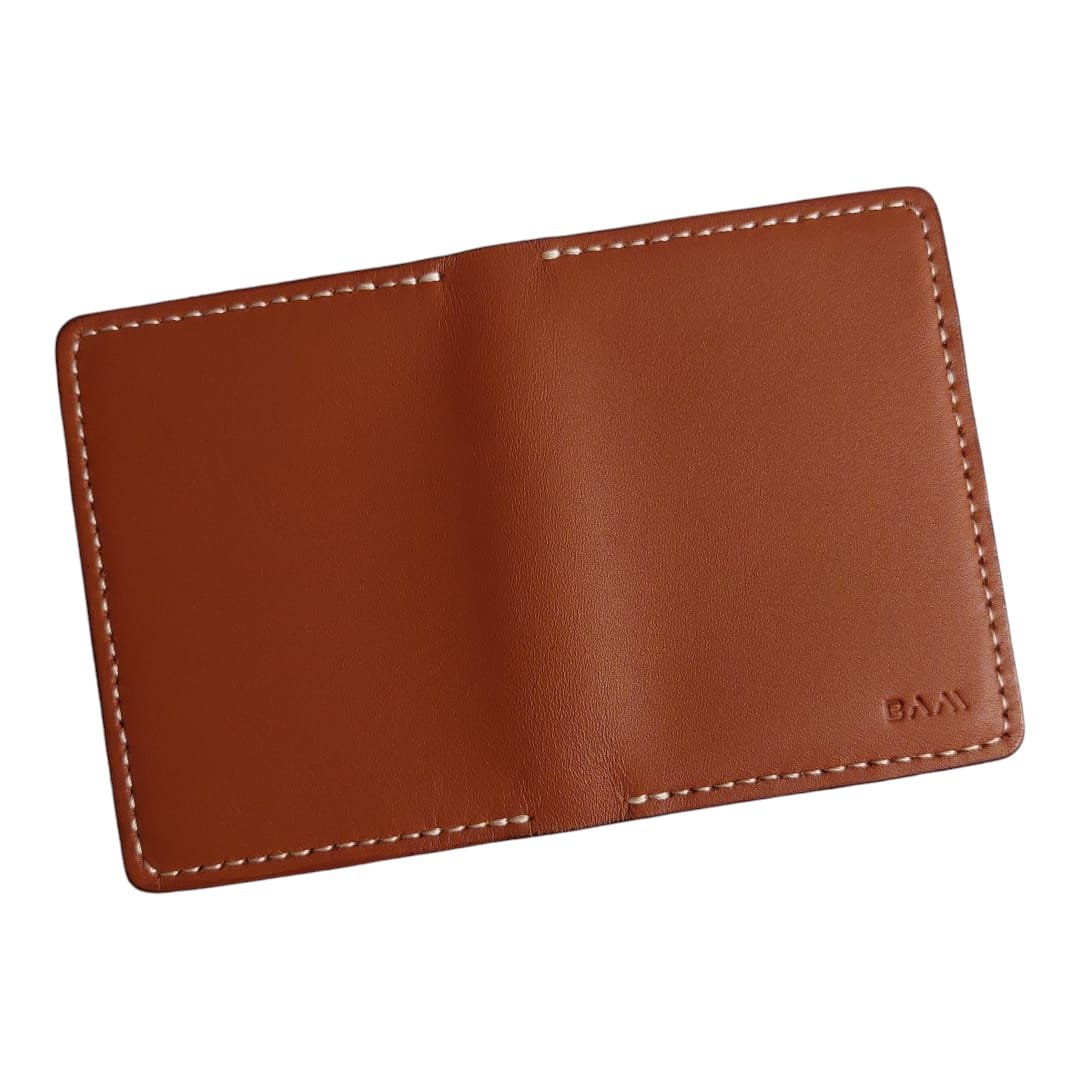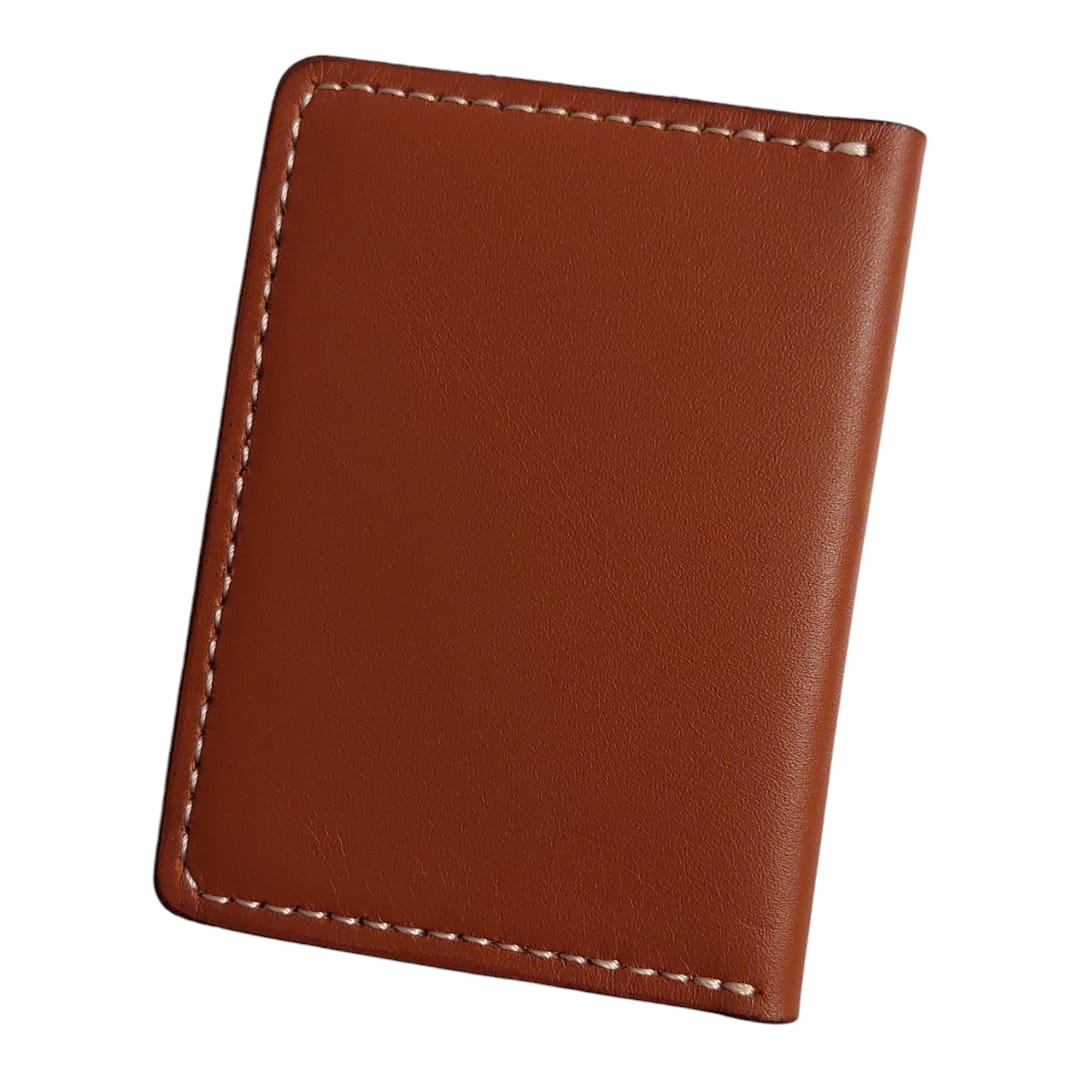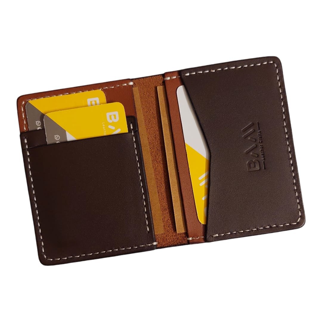 Bifold card holder having 3 card slots and 2 hidden pockets.