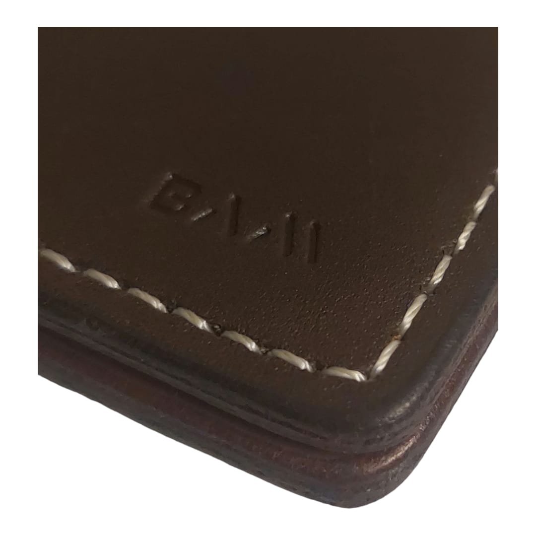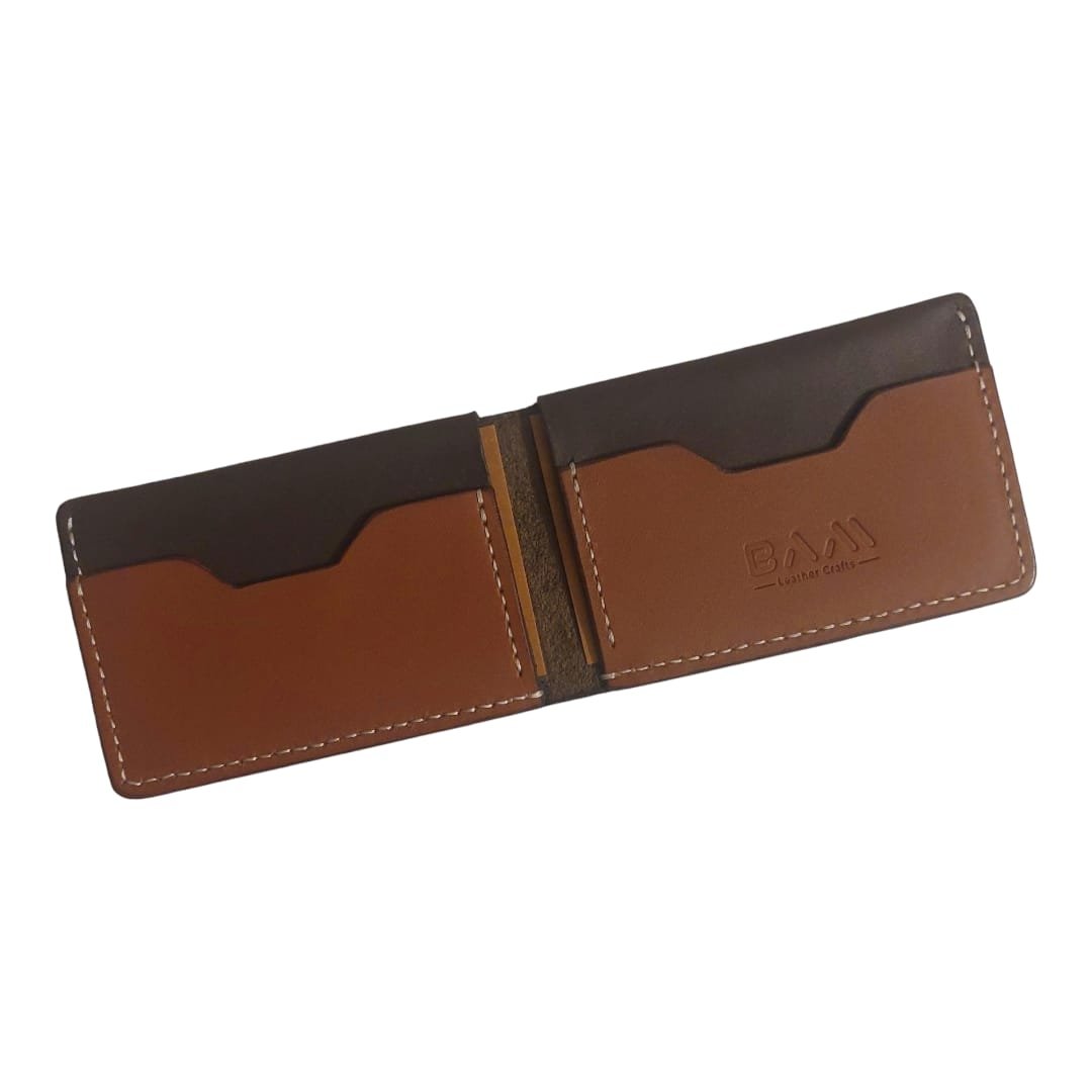 Bifold card holder having 3 card slots and 2 hidden pockets.