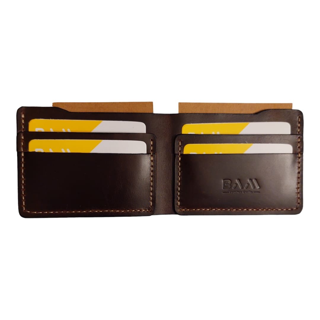 Bifold wallet having 4 card slots and 1 cash compartment.