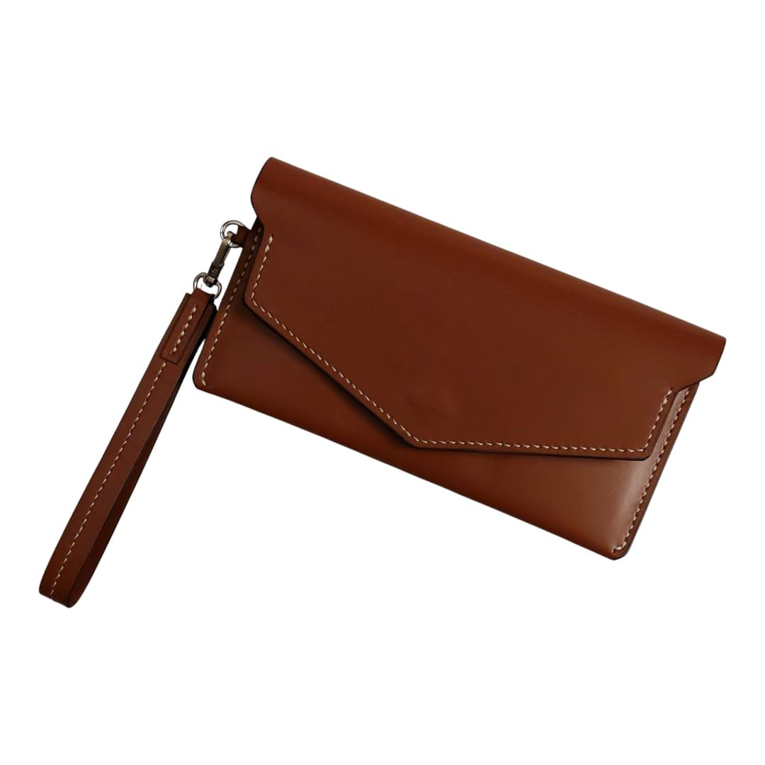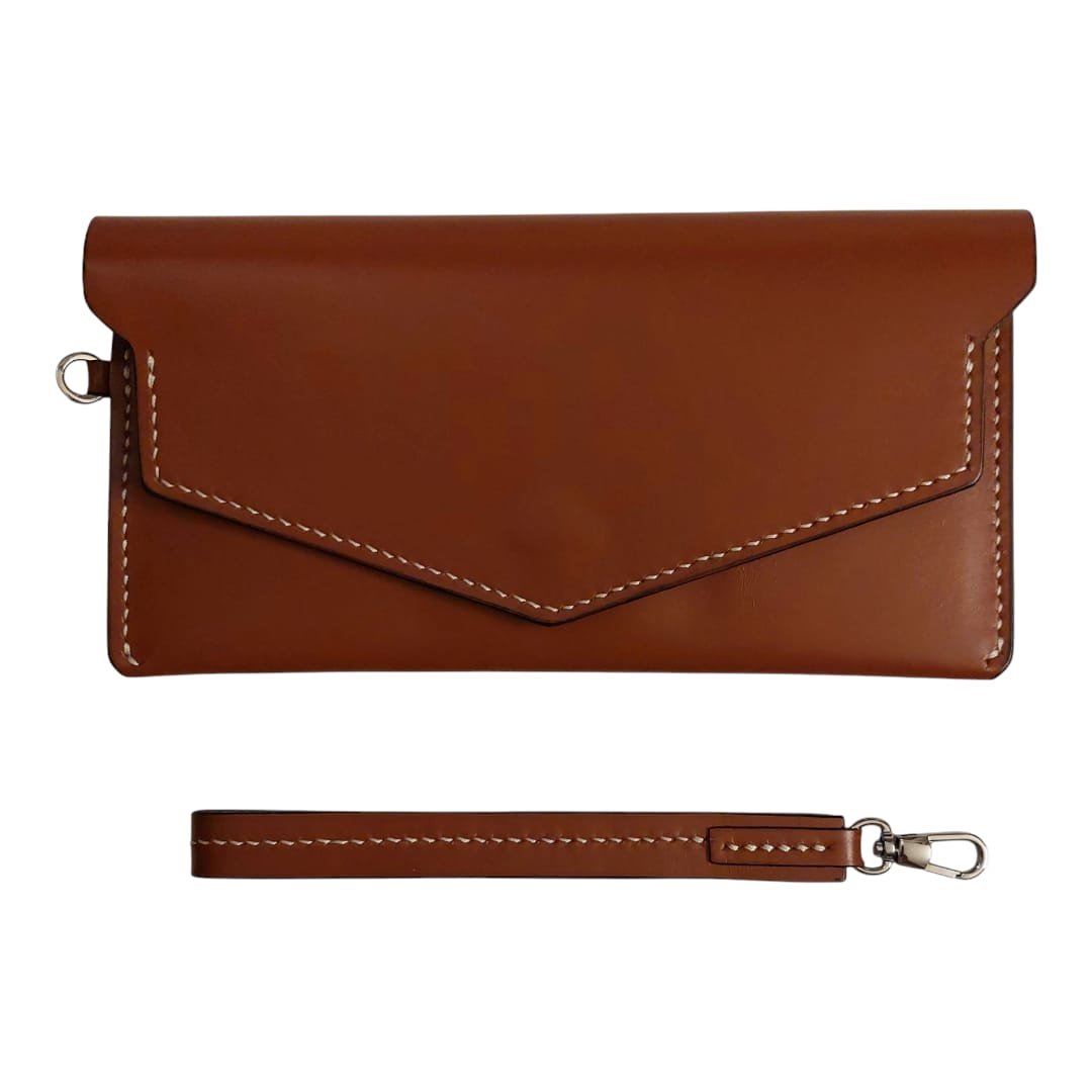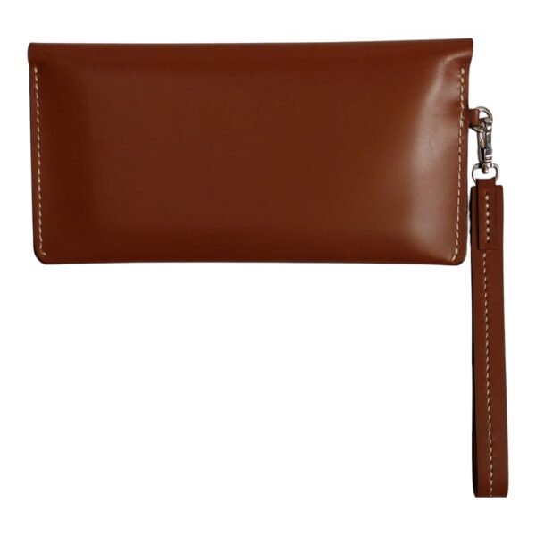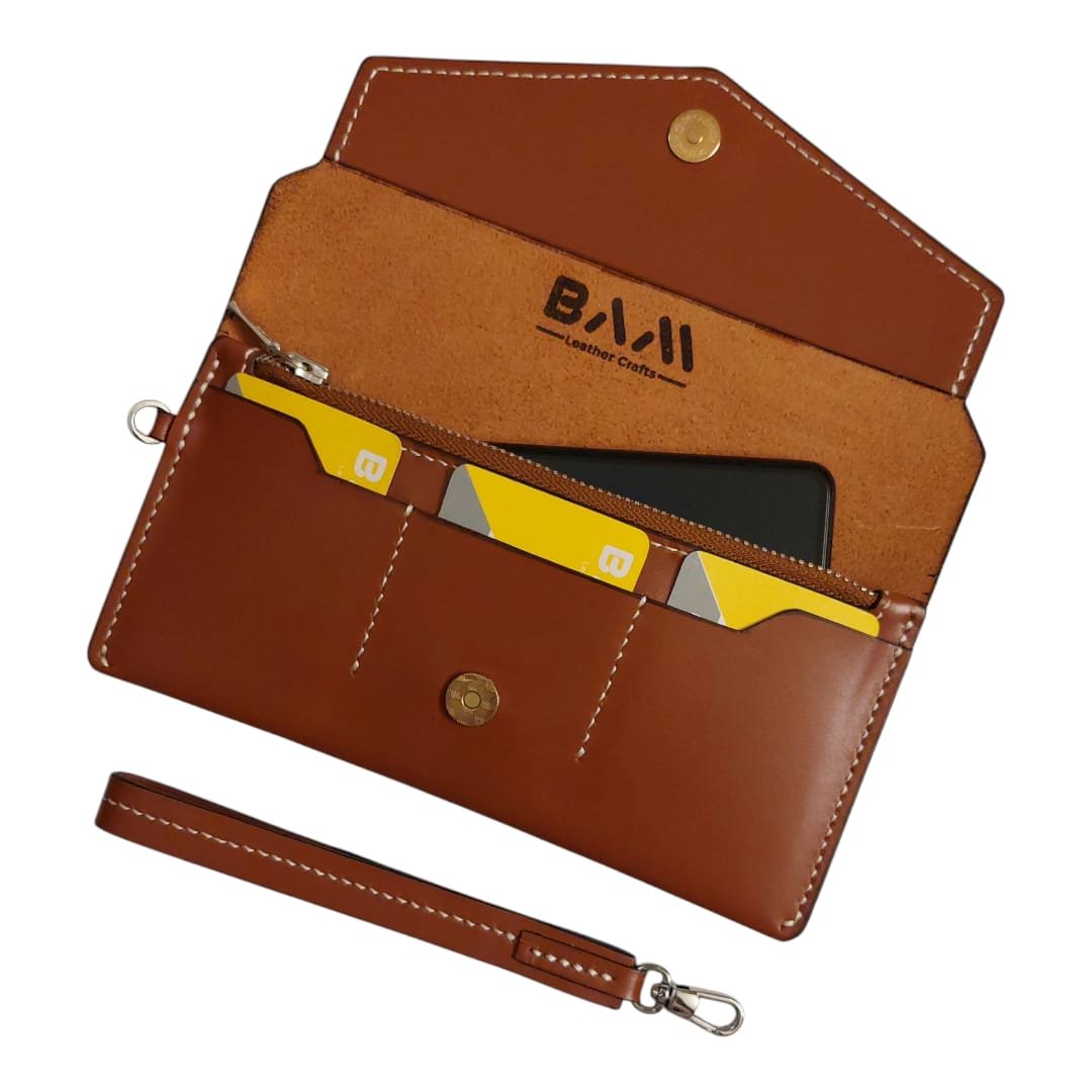 Clutch bag having 3 card slots, 1 cell phone and 1 cash pocket with metal zip.