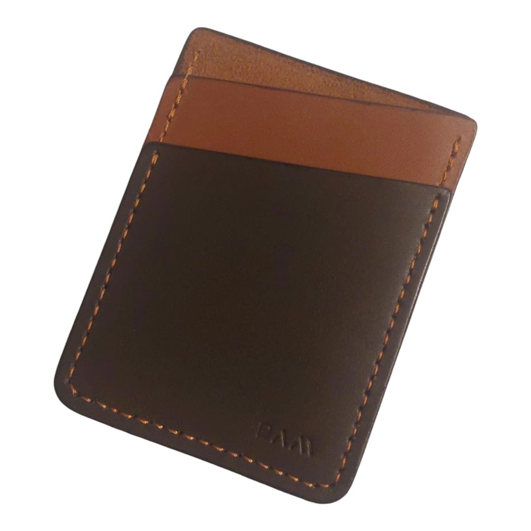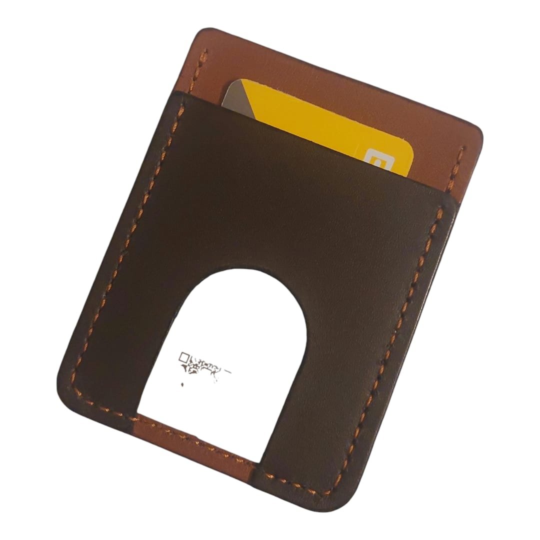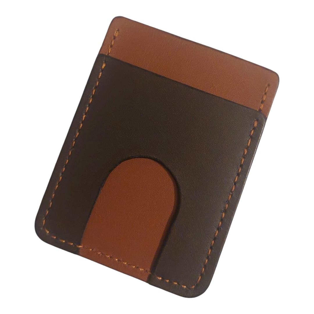 Card holder having 2 card slots and 1 cash pocket.