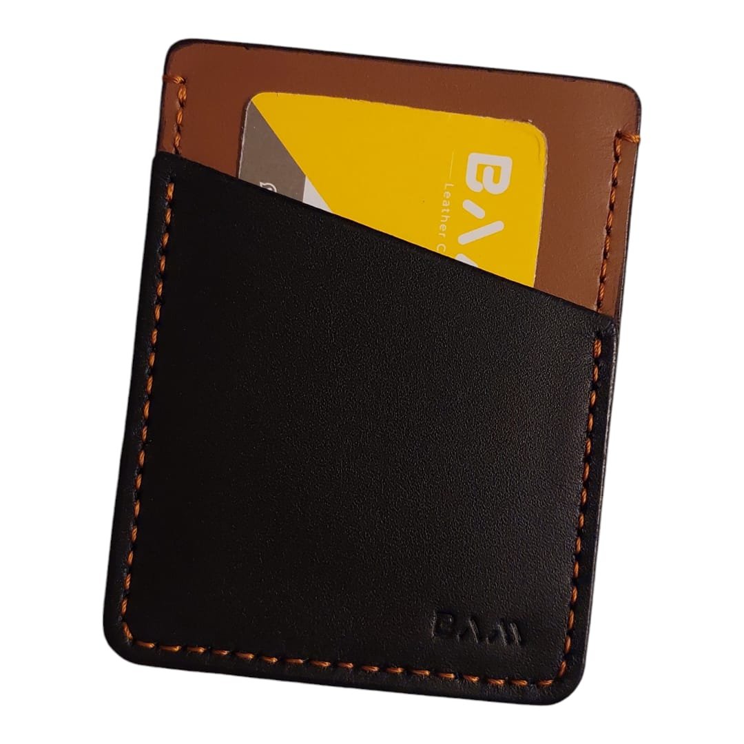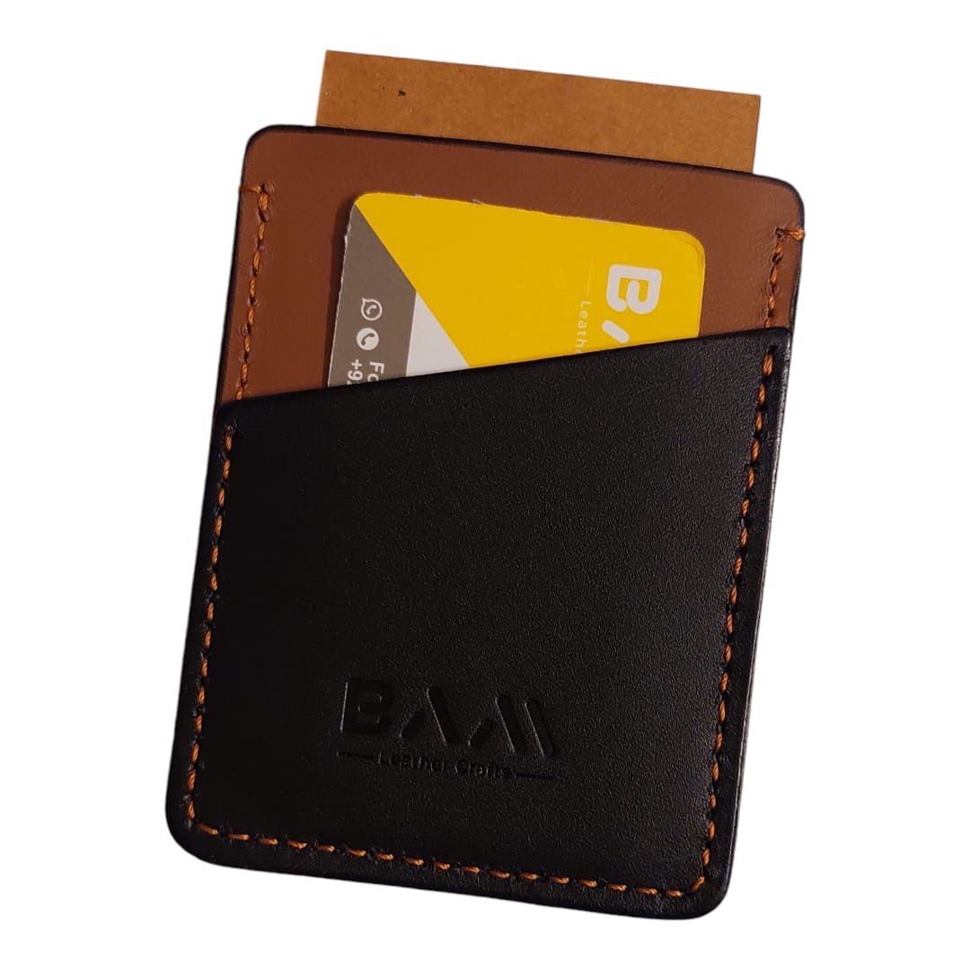 Card holder having 2 card slots and 1 cash pocket.